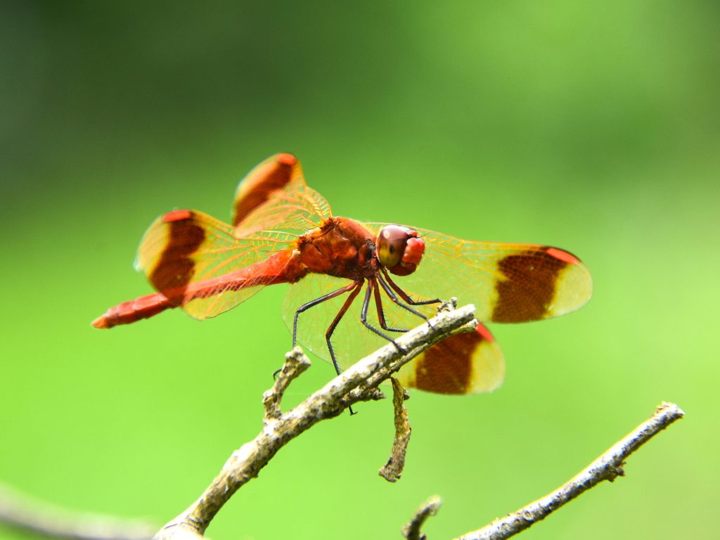 草原ではオミナエシやクサフジ、マツムシソウ、ツクシフウロの花が咲き、カラスアゲハやジャノメチョウ、ツマグロヒョウモンなどの蝶が舞うのが見られました。水辺ではギンヤンマやオニヤンマ、ミヤマアカネ、ミヤマカワトンボなどのトンボたちが飛び交っており、クヌギ林では木を揺するとノコギリクワガタが落ちてきました。