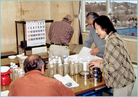 鳴き砂の減少は、生活排水、ごみの不法投棄、海岸の開発などに起因します。当初は、海岸清掃と小・中学校の総合学習に講師を派遣し、自然遺産を守る必要性をアピールしました。調査研究は、海岸の定点の砂を採取し、鳴き方ランク付け、砂の粒度分布、透視度、水質指標のCOD、鳴り音の波形解析、砂の成分分析を実施しています。2013年7月の「いわき鳴き砂フェスティバルin勿来(なこそ)」では、海岸清掃、放射線量調査、鳴き砂マップ作成、鳴き砂おもしろ体験教室、花崗岩と石英、その石英が砂の中に60%以上含まれると鳴き砂になること、さらには、なき砂に着色し砂絵を実施した。