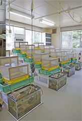 「幼虫大量飼育装置」の中で育つのはヘイケボタル。部屋の照明を消せば夢幻の世界が広がる