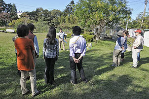 小金井市の大学構内でおこなわれたワークショップにて。自然の素材を使ったネーチャーゲームも森林療法のひとつ