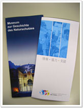 左:「ドイツ自然保護ミュージアム」と「ドイツ自然保護歴史財団」のパンフレット 右:「ドイツ自然保護歴史財団」の日本語パンフレットの内容 (写真提供:平山)