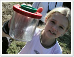 では子ども達の反応は?というと、それは遊んでいる子どもの顔を見ているとよくわかる。バッタを採取して図鑑で調べている女の子や、枯れ草を集めたり、友達同士でふざけあったり、みんな楽しそうだ。私たちも一緒になって、枯れ草集めに参加させてもらった。