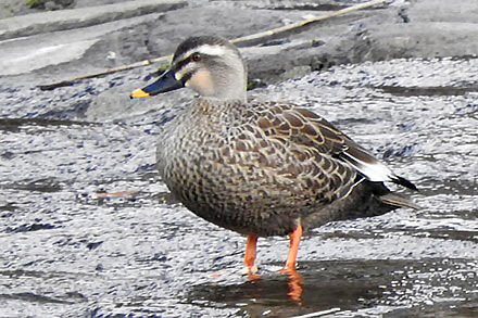 名前の通り、オスの長い尾羽が特徴(写真はオス)。首も他のカモに比べて長く、全体的にスマートな印象を受ける。冬鳥として全国的に渡来し、大群が見られる場所もあるが、飯田高原では多くない。狩猟鳥でもあり、肉は食用とされるが、マガモなどに比べて味はいまいちなんだとか…
