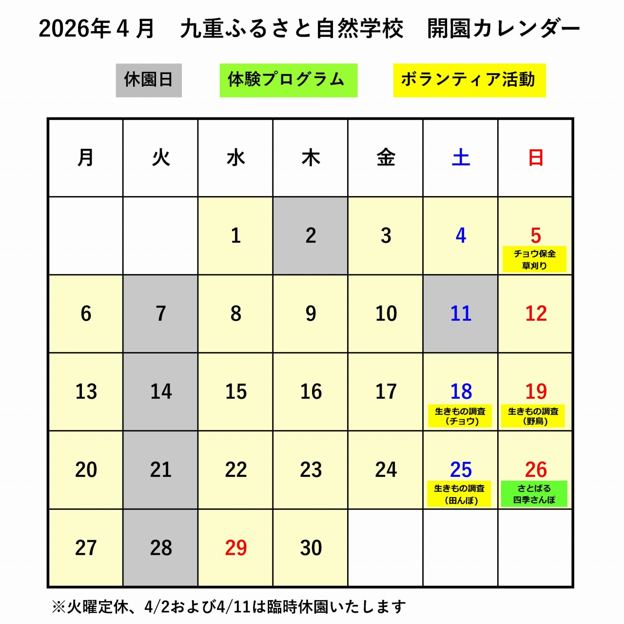 | 【開園時間】9:30~17:00(最終受付16:30) ※自然散策は事務所で受付をお願いします。 【入園料】無料 【定休日】火曜 ※4/2、4/11は臨時休園 |