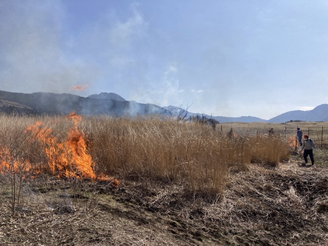 | 【野焼き】 九重ふるさと自然学校のフィールド・さとばる他、飯田高原の野焼きを行います。 九重町の春の風物詩に是非ご参加ください。 ■日時 (候補日) 3月の日曜日、祝日 ※正確な日時は当日の実施直前まで決定できません。 ご参加のお申し込みをいただいた方には、 実施が近づきましたら状況をご連絡いたします。 天候等の関係で候補日に行われない可能性も大いにあります。 ■内容 火入れは地元の野焼き実行委員会の方が行います。 ボランティアの方には自然学校スタッフとともに、 延焼を防ぐための消火作業をお手伝いいただきたいと思います。 ■対 象 ・野焼きに参加した経験のある方 ・野焼き講習会受講済みの方 ■持ち物 野外作業のできる長袖長ズボンの服装 (火傷防止のため化学繊維の服は不可) 帽子、タオル、軍手(木綿)、保険証(コピー可) ■集合場所 九重ふるさと自然学校 事務所 (大分県玖珠郡九重町大字田野1726-408) |