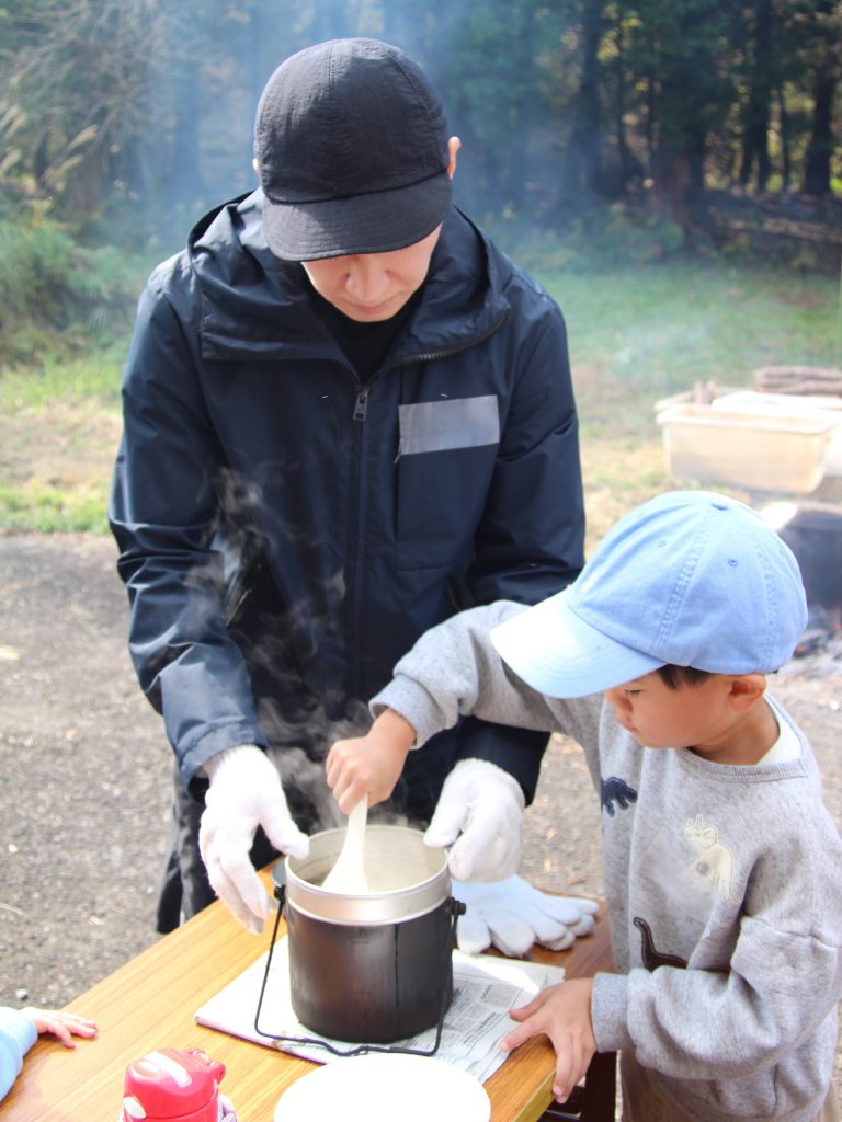 お次は10月にみなさんと収穫した新米を使った飯ごう炊さん!