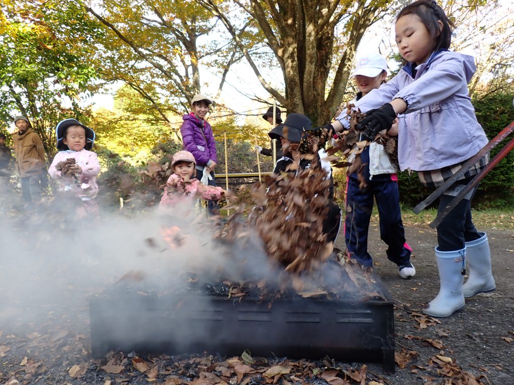 落ち葉を集める作業も、火を熱く感じることも、煙にいぶされることも、みんなでやれば楽しく思い出深い体験です♪