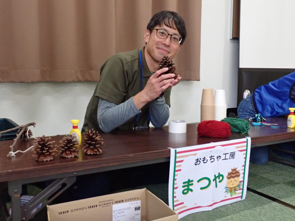 ①おもちゃ工房まつや(松ぼっくりけん玉づくり):担当 さっしー