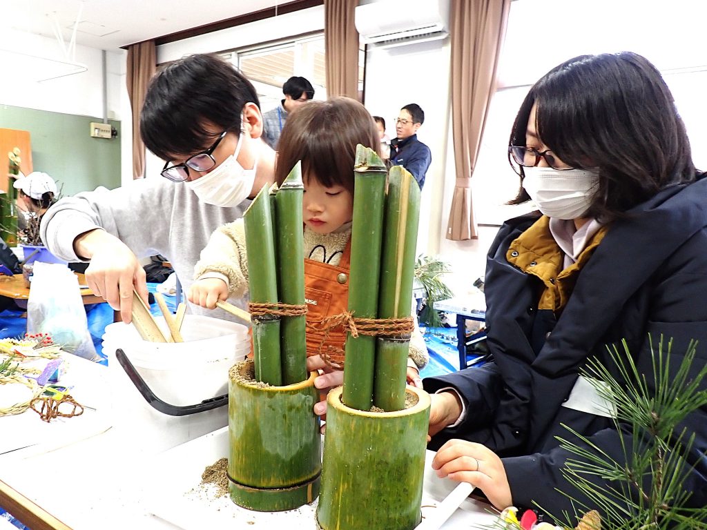 午前の部はこれにて終了。お昼をはさんで午後はミニ門松づくりにうつります。