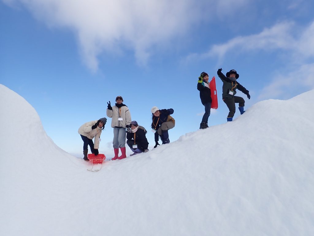 その後は、造雪中の雪山で雪遊びを楽しみました。そり遊びでは、子どもたちが一列につながり合って、全員で転ばずに滑り抜けることに挑戦。子どもたちが心をひとつに滑る様子はとても微笑ましい光景でした。