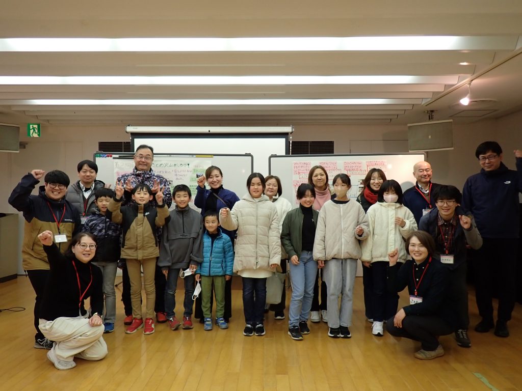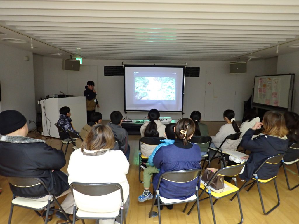 いよいよ最終回の報告会を九重文化センターで行いました。年末のお忙しい中、たくさんの保護者の方がご参加くださいました。最初に、第1回から第4回までの活動の様子をまとめた動画を子どもたちや保護者に見てもらいました。そして、各回の感想を担当する子どもが発表をしました。