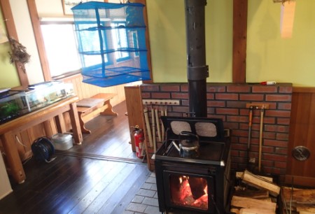 薪ストーブの熱で乾燥させます