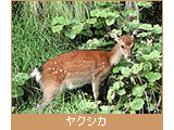 屋久島の山岳地形や黒潮に育まれた多彩な植生は、豊かな動物相の維持に貢献しています。県道や人里近くでよく見かけられるのは、大型ほ乳類のヤクザルとヤクシカです。島には、現在約4,000〜6,000頭のヤクザル、そして約3,000〜6,000頭のヤクシカが生息しているといわれ、古くから島の人々と島の植物連鎖の頂点を分かち合ってきた野生動物です。また、本土では見られない国の天然記念物のカラスバトが生息するなど、孤島固有の鳥類も観察できます。さらに、屋久島は昆虫類の宝庫としても名高く、ヤクシマエゾゼミなどの固有種や、ヤクシマトゲオトンボ、ヤクシマオニクワガタなどの固有亜種を含む約3,000種が生息しています。その大部分は、九州本島との共通種で、かつ南限種を含み、屋久島と奄美大島の間に存在する目に見えない生物分布の境界線