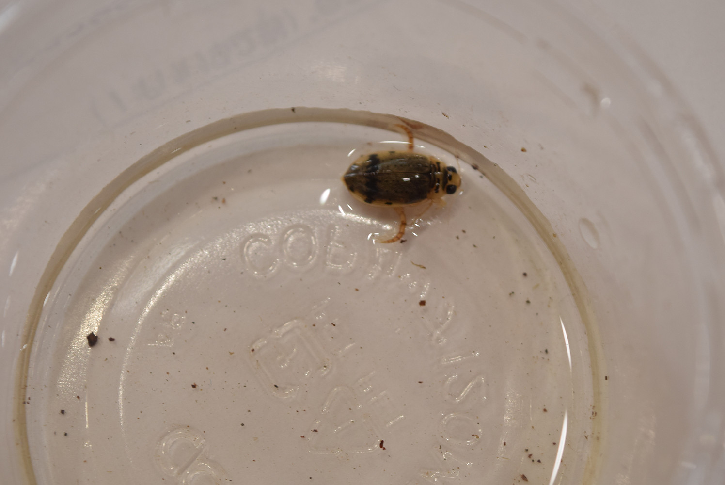 灰色に黒い模様が入った小型のゲンゴロウの仲間。里山ビオトープの1番最初のお客様です。
