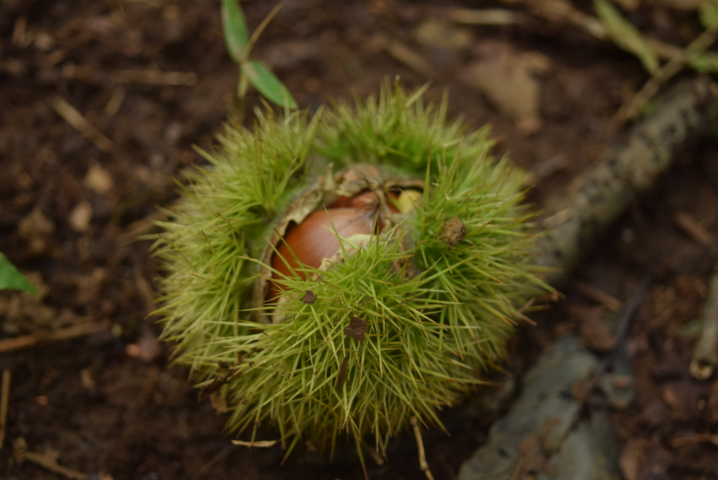 クリのイガの棘はとても鋭く、軽く触れるだけでも痛いです。しかし、イノシシはその棘を物ともせず、イガの中からクリを取り出し、食べてしまいます。
