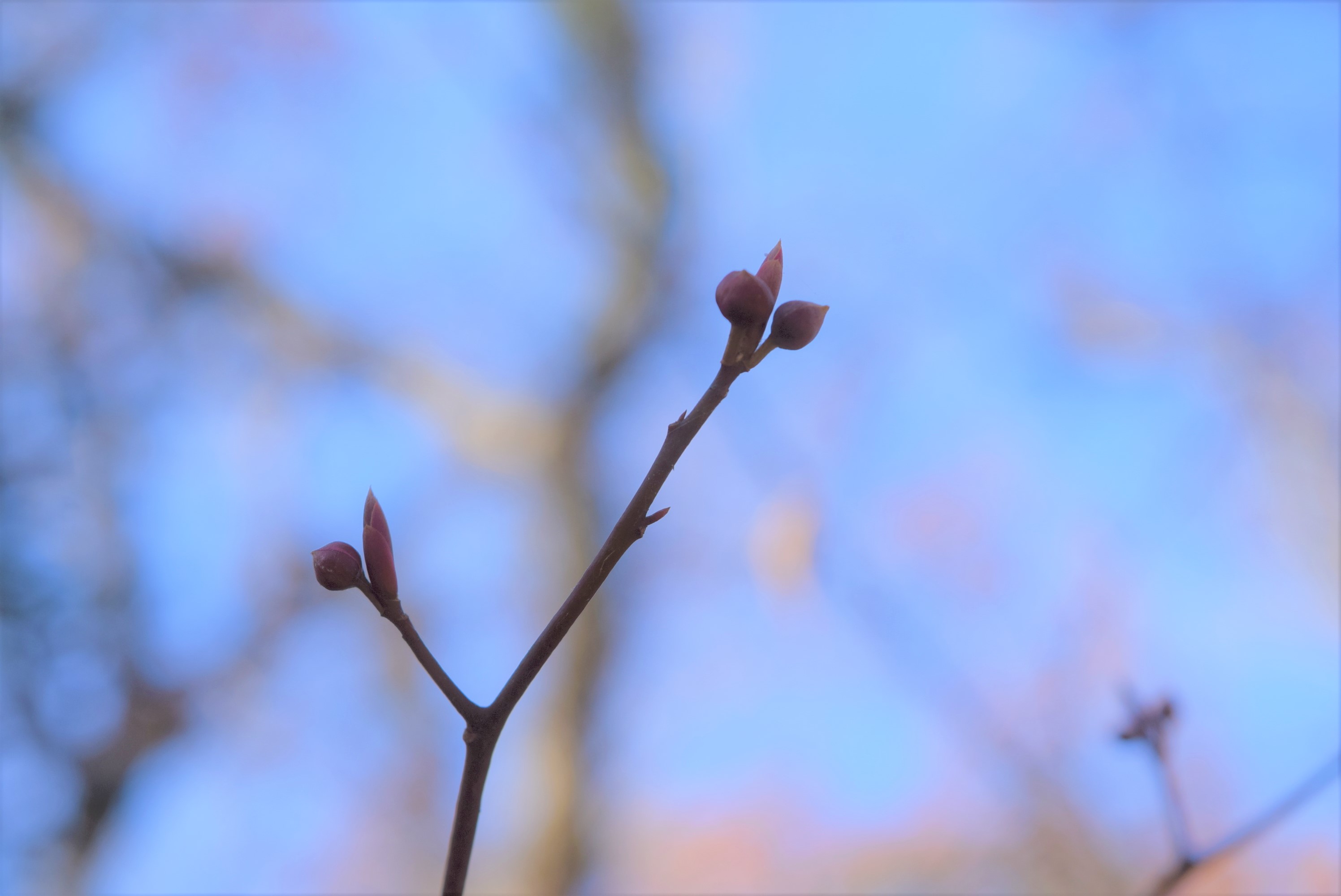 春早くに花と葉を同時に出すクロモジは、冬芽の時から細長い葉の芽と丸い花の芽を一緒につけ、春の訪れを心待ちにしています。