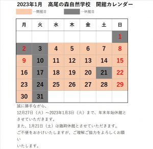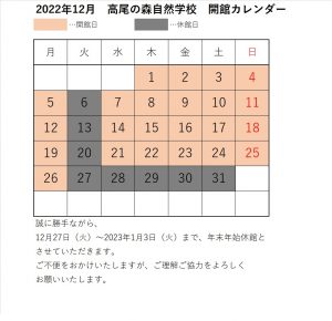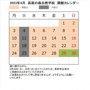 日頃より、高尾の森自然学校をお引き立ていただきありがとうございます。