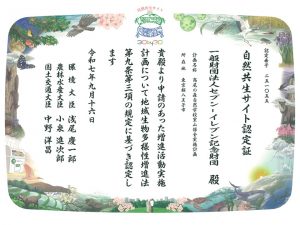 認定に伴い、930日に実施された認定式では、代表の自然共生サイトとして浅尾環境大臣から直接認定証を授与していただきました。