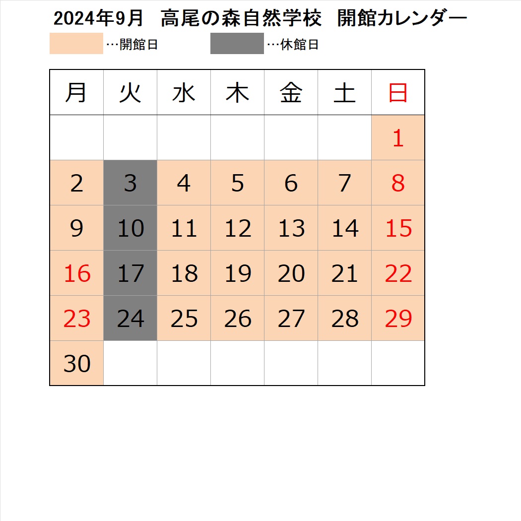 9月の開館日は以下の通りです。
