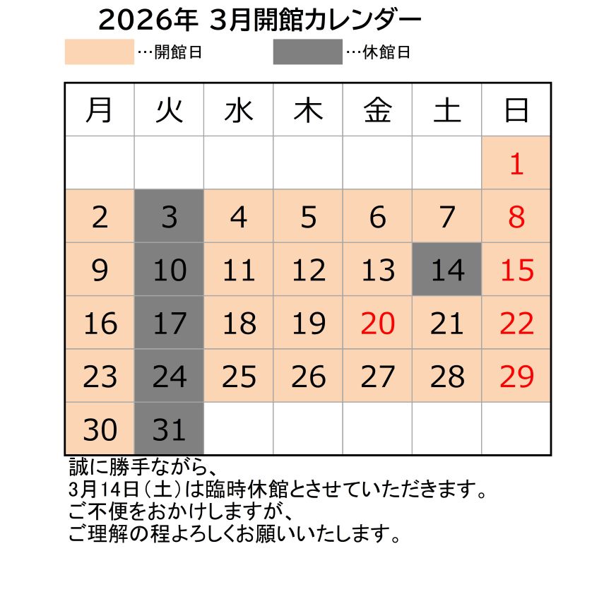 3月の開館について