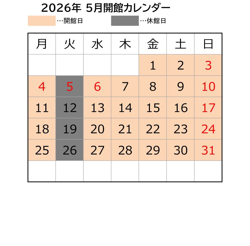 月の開館日は以下の通りです。