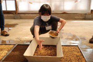 環境体験学習 「田んぼdeまなぼ-早春の苗づくり-」実施しました! 2023年5月5日(金) 田植えに向けての準備として、稲の苗づくりを行いました。田んぼをお借りしている農家さんの作業場にお邪魔して、作業開始です。パレットに土を入れ、種を蒔き土を被せていきます。簡単な作業に見えますが、参加者からは土をキレイに平らにさせたり、種を均等に蒔くのが難しかったとの感想をいただきました。次回は、田んぼのあぜ塗り作業を行います。(石井) パレットに土を入れ、平らにします 種籾(お米の種)を観察 土を入れたパレットに種籾蒔いていきます 最後に土を被せて完了!