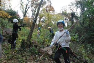 まずは、9月の活動で発見したちぎれたロープの入れ替えです。より丈夫なロープを用意して縛りつけ、「ヒミツキチ」へ昇り降りしやすくしました。