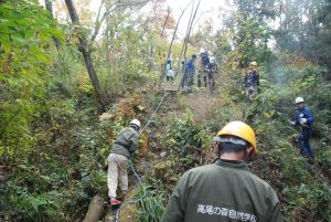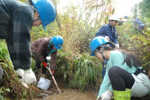 11月23日の「ジュニボラ」は、9月の活動に引き続き沢の源流を整備しました。